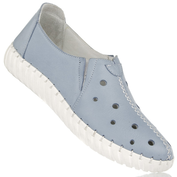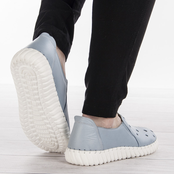 - Ażurowe półbuty Slip-On w niebieskim kolorze