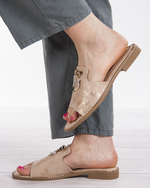 - Klapki płaskie damskie S.Barski model KV27-032 rose z ozdobami, złote