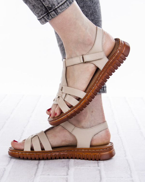 - Sandały damskie skórzane Artiker 54C0811 beige w beżowym kolorze