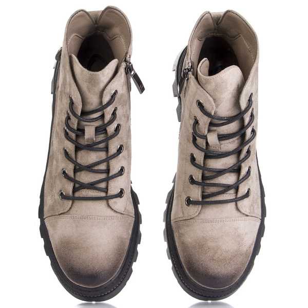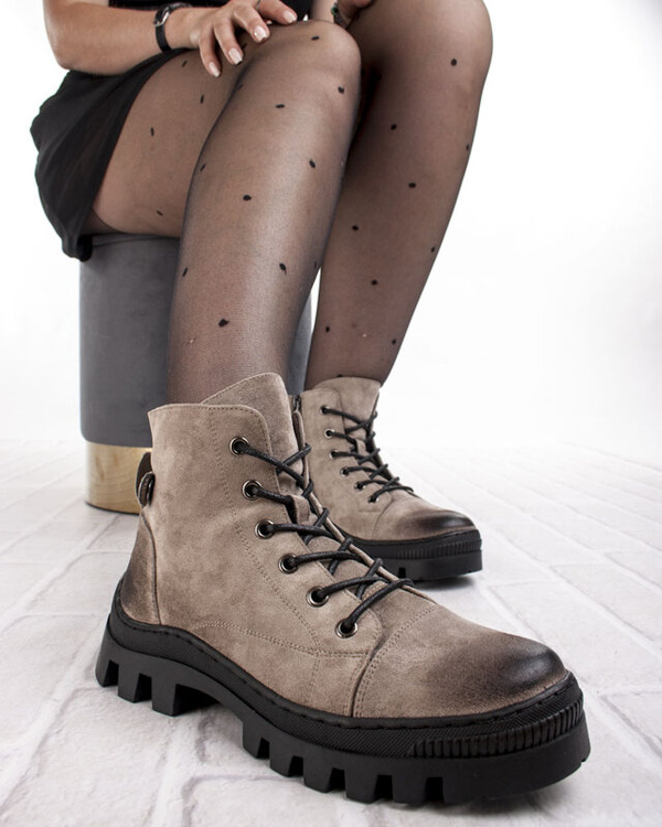 - Botki damskie Potocki model 24-12168KH wykonane z ekozamszu w beżowym kolorze