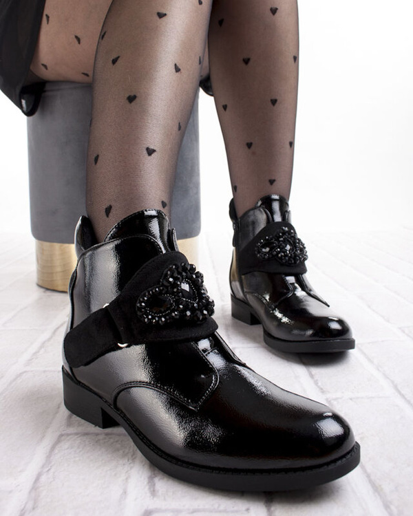- Botki damskie Barski model HY42-021 black wykonane z ekoskóry lakierowanej w czarnym kolorze