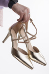 • Szpilki z paskami z ozdobami Prestige 2227/SZP ZŁ-LICO/ZŁ-CEK wykonane z licowej skóry naturalnej w złotym kolorze