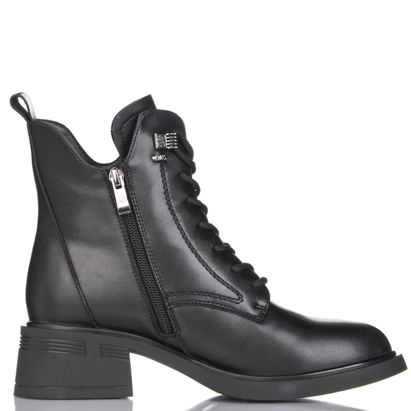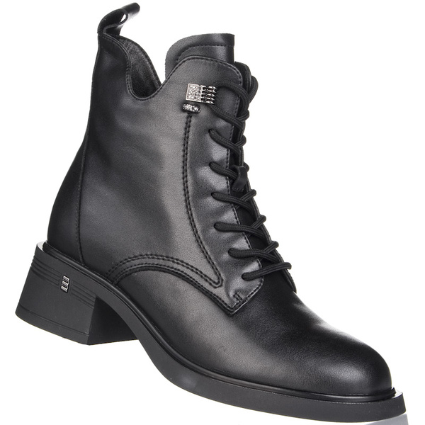 - Trzewiki na obcasie damskie Barski model CR42-090 black wykonane z naturalnej skóry licowej w czarnym kolorze