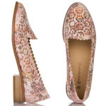 - Półbuty damskie to połączenie klasyki i subtelnego, romantycznego stylu. Wyróżniają się pięknym ażurowym wzorem, który zapewnia doskonałą przewiewność i lekkość. Ich pastelowa kolorystyka z delikatnym, kwiatowym motywem dodaje im unikalnego uroku.