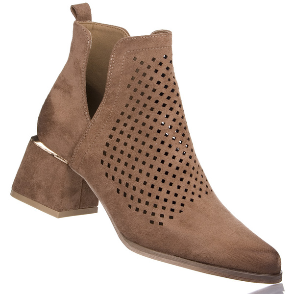 - Stylowe i niezwykle wygodne botki w odcieniu brązu to doskonały wybór na wiosnę i jesień. Wykonane z miękkiego zamszu ekologicznego, charakteryzują się modnym ażurowym wzorem, który zapewnia przewiewność i nadaje im lekkości.