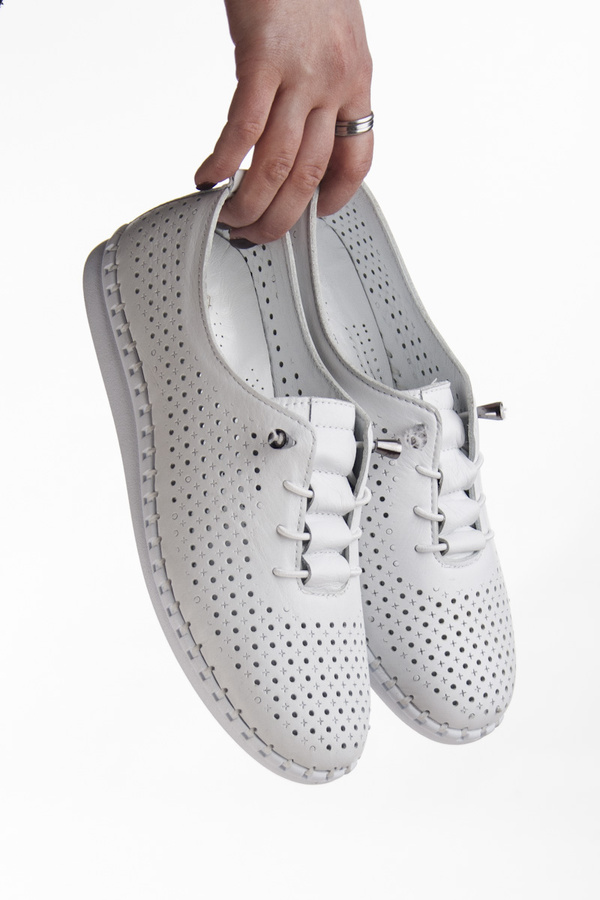 - Półbuty ażurowe damskie MIS W016 white wykonane z naturalnej skóry w białym kolorze.