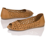 - Wyjątkowy model balerin, który łączy kobiecy charakter z lekką, letnią formą. Ażurowa cholewka o geometrycznych wycięciach nie tylko przyciąga wzrok, ale zapewnia również doskonałą cyrkulację powietrza.