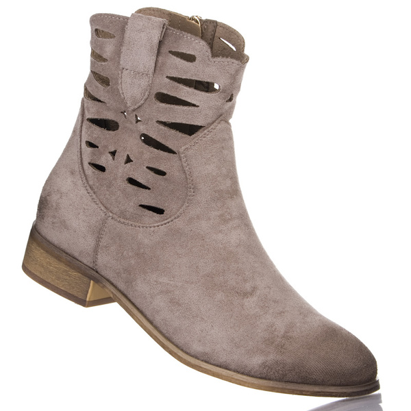 - Stylowe i niezwykle wygodne botki w odcieniu beżu to doskonały wybór na wiosnę i jesień. Wykonane z miękkiego zamszu ekologicznego, charakteryzują się modnym ażurowym wzorem, który zapewnia przewiewność i nadaje im lekkości.