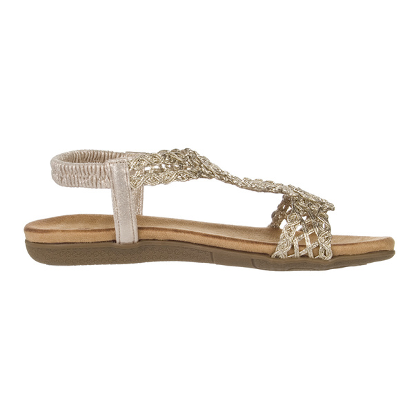 - Delikatne sandały Artiker w złotym kolorze łączą modny styl boho z wygodą – ażurowe paski, miękka wkładka i elastyczny pasek czynią je idealnym wyborem na lato.