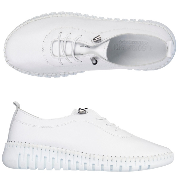 - Lekkie półbuty damskie T. Sokolski OG 4000 z białej skóry naturalnej, na elastycznej podeszwie z miękką skórzaną wkładką. Komfort na każdy dzień.