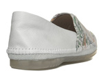 - Balerinki Maciejka wykonane z naturalnej skóry. Połączenie białej skóry z kwiatowym wzorem sprawia, że buty są niezwykle modne, a do tego wygodne.
