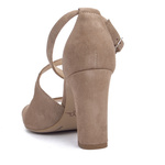 - Sandały na obcasie Kotyl 5905 wykonane z naturalnej skóry w beżowym kolorze.