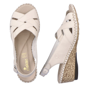 Sandały damskie na koturnie skórzane beżowe Rieker 66189-60 beige