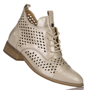 Ażurowe botki damskie Potocki 12091GD złote wiązane