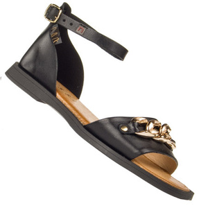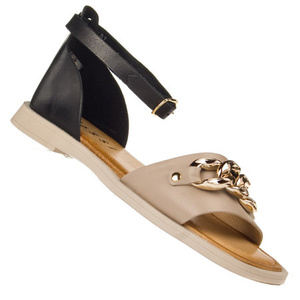 Sandały damskie Nessi 22185 cz+beż łańcuch