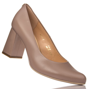 Beżowe czółenka damskie na klocku Kotyl 0553 beż lico buty skórzane