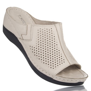 Beżowe klapki damskie ażurowe na koturnie T. Sokolski L25-157 beige