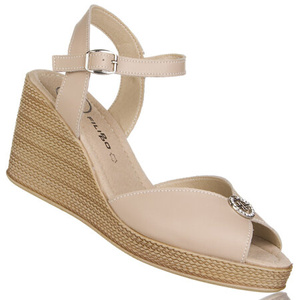 Skórzane Sandały na koturnie damskie Filippo DS6032/25 BE beżowe