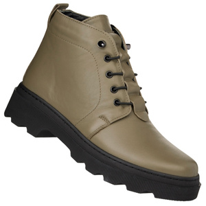 Botki khaki damskie Potocki 12672KH zielone na grubej podeszwie ocieplone