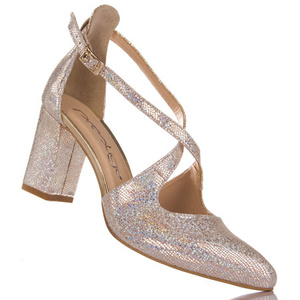 Miedziane czółenka skórzane Kotyl 891 róż złoto buty na słupku