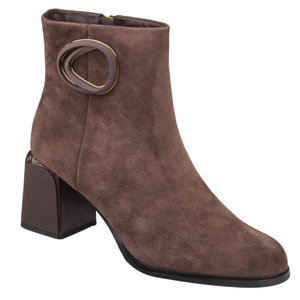 Zamszowe Botki na słupku damskie Artiker 57C0017 brązowe skórzane