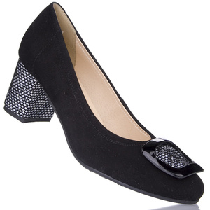 Czółenka damskie Prestige 2228 zamszowe czarne skórzane
