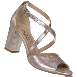 Sandałki na słupku damskie Prestige 2100 toffi lico skórzane