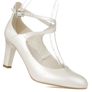 Białe czółenka z paskami Kotyl 7077 biała perła skórzane buty ślubne