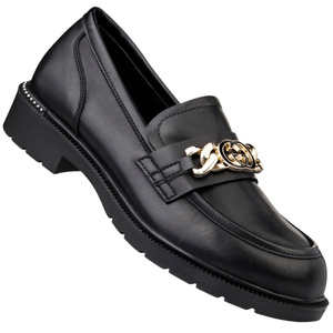 SKÓRZANE półbuty damskie S.Barski MR52-179 czarne z ozdobą eleganckie