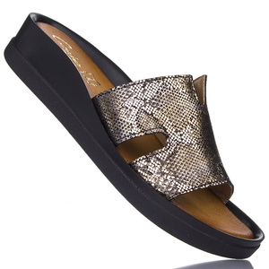 Klapki na platformie z metalicznym wzorem Contes 593 skórzane wąż