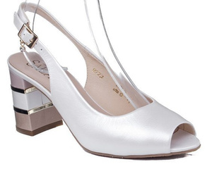 Beżowe czółenka z paskami Kotyl 0663 perła lico skórzane buty ślubne