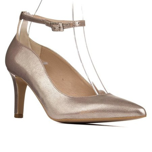 Beżowe czółenka na słupku z paskami Kotyl 7077 beż lico skórzane