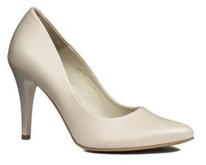 Czółenka z paskiem na środku Kotyl 889 beż lico skórzne buty ślubne
