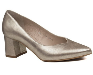 Złote czółenka na obcasie Kotyl 549 złoty ef skórzane